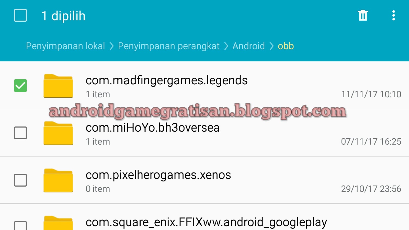 - Taruh data di Internal/ android/ obb/ di sini guys (kalau belum ada "BUAT" foldernya manual)